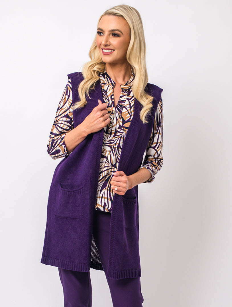 This sleeveless knit cardigan with pockets is the perfect Autumn layering piece. Its light, breathable fabric pairs effortlessly with our Blouses. Creating a chic and comfortable look for any occasion. Ideal for transitioning between seasons, it adds style and versatility to your wardrobe.