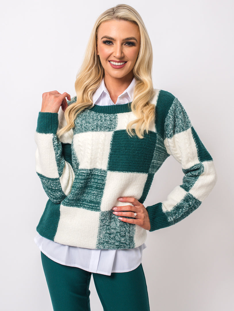 Soft touch knit Jumper. Square design. Pair with our White cotton shirt for a complete look. Gorgeous knitwear for the Autumn months.
