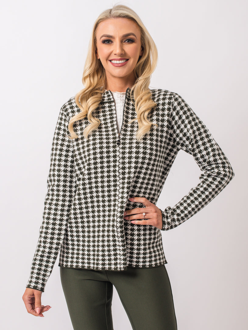 Zip up checked design cardigan. Gorgeous knitwear for the Autumn months.