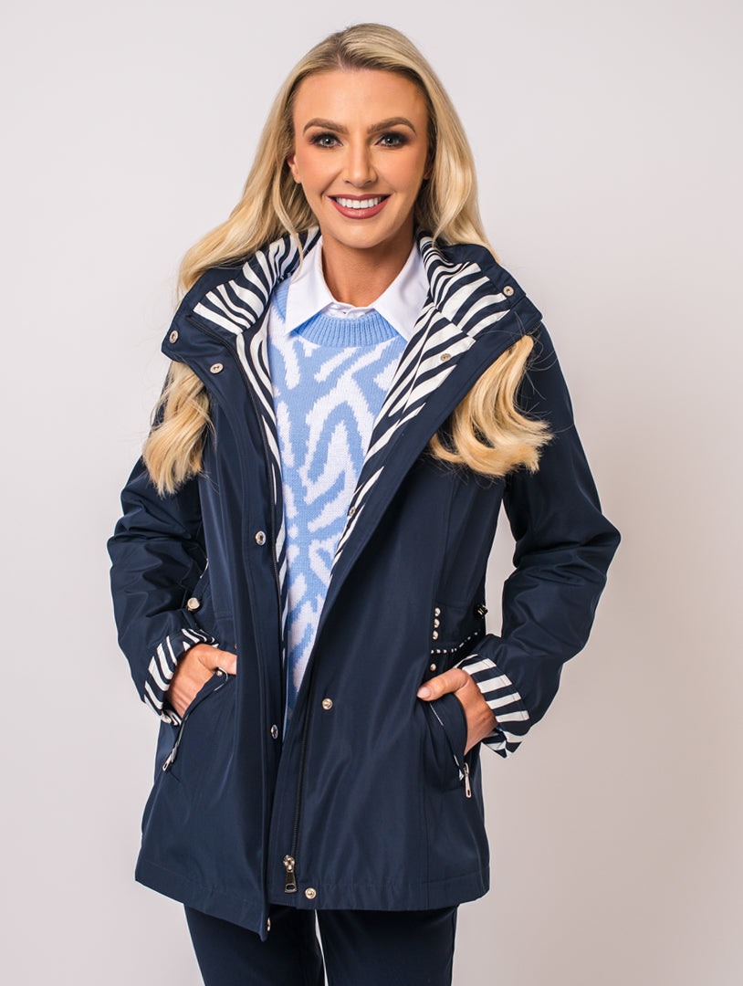 Zebra-Lined Waterproof Jacket with Detachable Hood